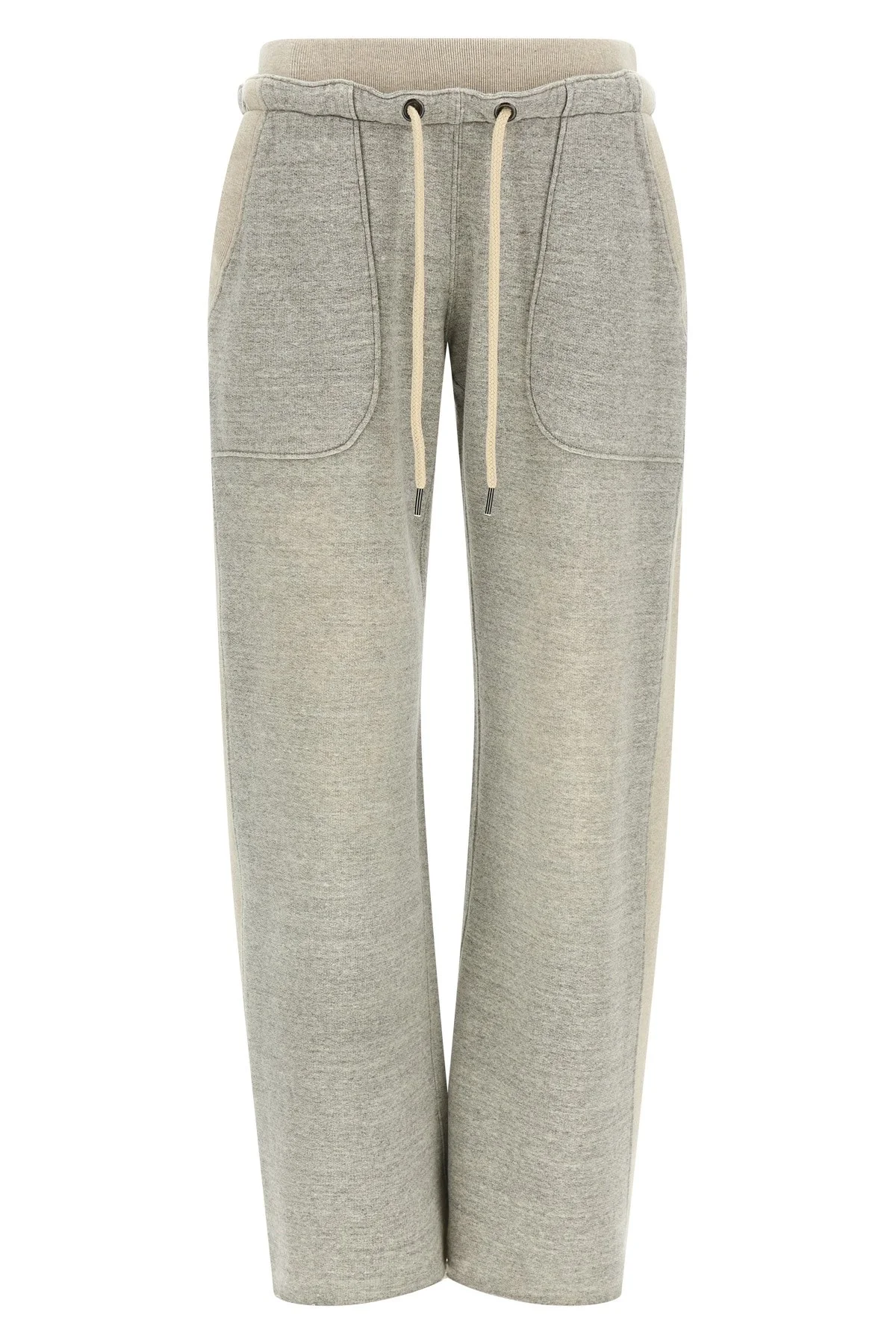 cod. R13WK334001BHHEATHERGREYWOATMEAL Melange fleece cotton joggers with stretch knit inserts and side ribbed, drawstring elastic waistband, wide leg, pockets, leg bottoms with raw cut hem. Color: Gray Size & Fit: Comfort fit Composition: 100% cotton Made in: China
