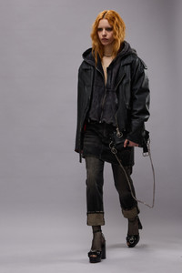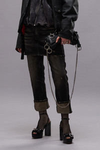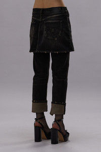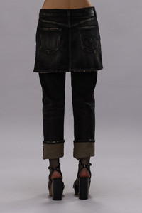 The double classic jean, featuring a denim miniskirt over the Romeo jean. Built with comfort stretch mid-weight denim and featuring a dark black wash with mild abrasions. - Color: Abbey Black - 92% Cotton, 8% T400 - R13WD124-D152D - Imported