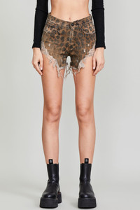 Classic slouch short featuring heavy shredding at the legs.Originally featured in the Pre-Fall 2019 collection. - Color: Leopard - Made in Italy - R13W0190-971