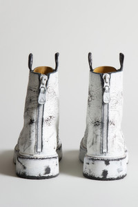 R13's iconic handmade leather combat boot, featuring a lightweight 1.5" stacked sole, embroidered logo pull tabs and a coat of cracked white paint. - MADE IN ITALY - Color: Painted White - 100% Leather - R13WS025-S098B