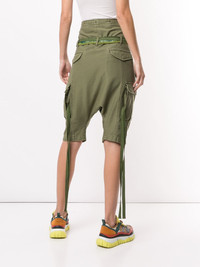 slim-fit cargo shorts Olive green cotton slim-fit cargo shorts from R13 featuring a tie fastening, a slim fit, a button fastening, side pockets, a knee length and rear pockets. Imported Composition Cotton 100% SIZE & FIT Model measurements Height 5 ft 10 in(1.78 m) Bust/Chest 33.46 in(85 cm) Hips 36.22 in(92 cm) Waist 23.22 in(59 cm) FittingInformation This piece fits true to size. We recommend you get your regular size Cut for a loose fit. Comes with an adjustable belt for a flexible fit at the waist Made with a mid-weight fabric Washing instructions Machine Wash
