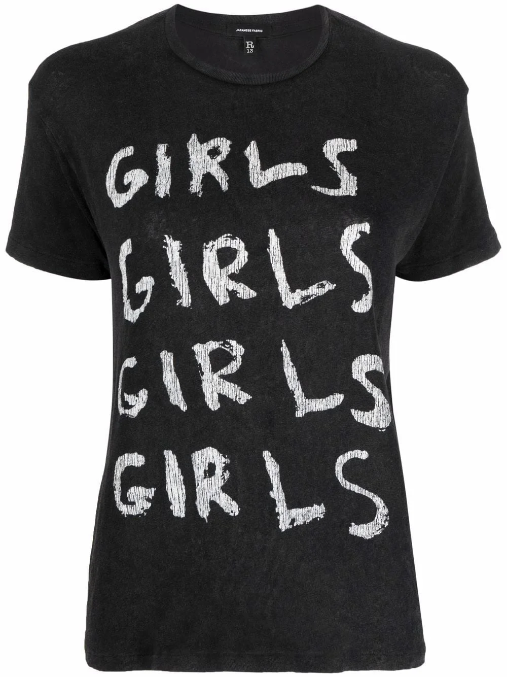 slogan-print short-sleeved T-shirt Cut from cotton with a faded effect to showcase the brand's irreverent spirit, this R13 T-shirt is printed with a 'Girls Girls Girls' slogan on the front. Imported Composition Cotton 97%, Spandex/Elastane 3% Washing instructions Machine Wash