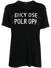 slogan-print T-shirt An exemplar of R13's subversive approach to design, this slogan T-shirt is printed front and centre with an anagram and stitched 'fold here' instructions. Imported Composition Cotton 97%, Spandex/Elastane 3% SIZE & FIT Model measurements Height 5 ft 10 in(1.77 m) Bust/Chest 31.49 in(80 cm) Hips 35.03 in(89 cm) Waist 23.22 in(59 cm) Measurement SLEEVE LENGTH 6.69 in(17 cm) LENGTH 25.59 in(65 cm) BUST 37.79 in(96 cm) Shoulder Width 15.74 in(40 cm) FittingInformation This piece fits true to size. We recommend you get your regular size Cut for a relaxed fit Made with a mid-weight stretch fabric Washing instructions Machine Wash