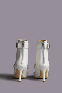 Leather ankle heeled boot with harness straps throughout. DETAILS Heel Height: 3.75", 95 mm Shaft Height: 5.9", 15 cm Shaft Circumference: 7.87", 20 cm Based on size 40; slight variations may occur by size. Made in Italy Color: White 100% Leather R13S081-S239A