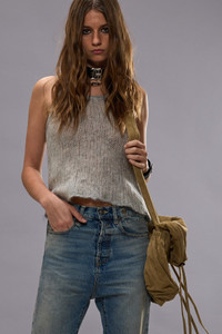 Shrunken knit sweater tank built from kid mohair blended wool. DETAILS Color: Light Heather Grey Mohair 32% Kid Mohair, 28% Merino Wool, 40% Nylon R13WY279-Y196B Imported