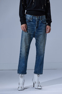 Relaxed fit drop jean built with Japanese denim in a medium wash with a mild wear pattern. DETAILS Color: Leo Blue 100% Cotton R13W6452-D344A Imported