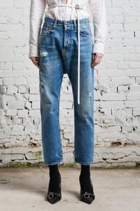 This style runs slightly large. If in between sizes, we recommend sizing down. - Made in Italy - Color: Bain - Mid rise straight jean; ankle length - Relaxed fit with drop crotch - Classic five pocket styling - True to fit - Model is 5’11” and wearing size 25 - Inseam 20 1/4", Front Rise 15 3/4", Back Rise 18 1/4" - Bust 34”; waist 24”; hips 35” - 100% Cotton - Machine wash cold, Do not tumble dry - R13W6452-969A