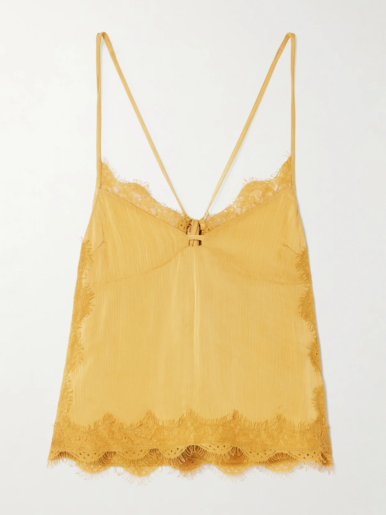 R13's camisole welcomes warmer days with its sunny hue. It's cut from lightweight crepon and has a sweetheart necklace trimmed with lace.