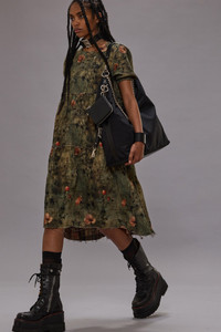 Tiered midi dress featuring shredding details and built with printed Italian cotton gauze on both sides for reversible styling. DETAILS Made in Italy Color: Plaid with Turquoise Floral 100% Cotton R13WR465-R582B