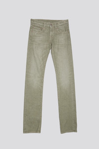Low rise slim leg jean fitted through the hip and thigh. Built with yarn dyed comfort stretch denim with a subtle wear pattern and mild abrasions. - Made in Italy - Color: Army Green Stretch - 99% Cotton, 1% Elastane - R13WD091-D289A
