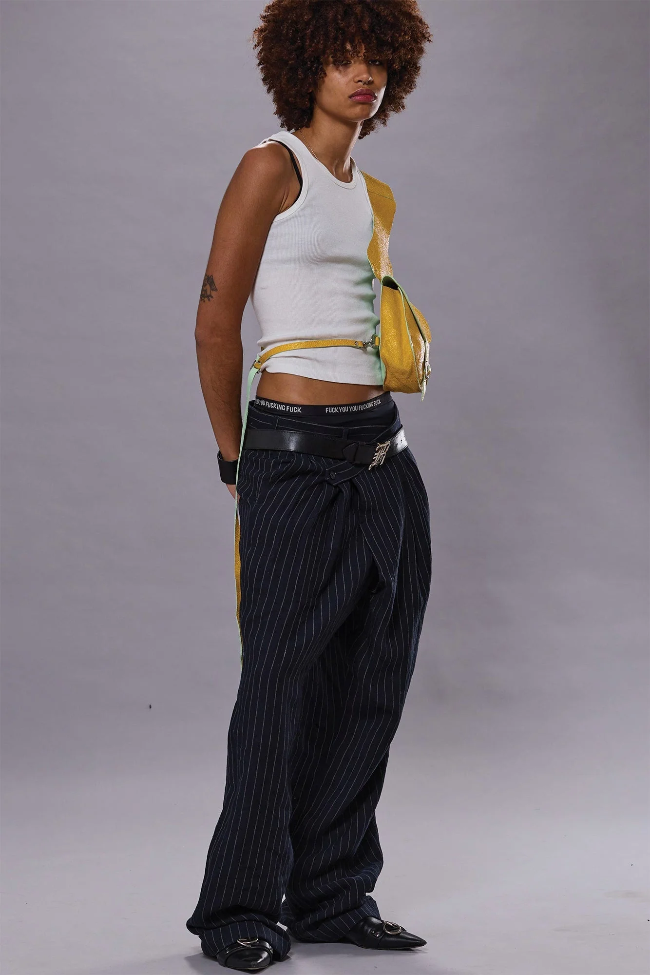 Triple pleated suit trouser based on R13's iconic Crossover jean and built from Japanese linen. DETAILS Made in the USA Color: Dark Navy Stripe 100% Linen R13W7516-R513A
