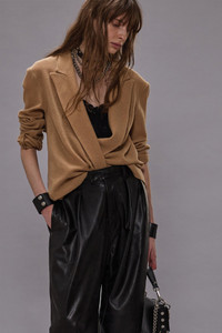 Relaxed fit top featuring peak lapel blazer details, but twisted at the waist with an elastic band for volume. Built from Japanese wool blend fabric. DETAILS Made in Italy Color: Camel 50% Cashmere, 50% Virgin Wool R13WR430-R571A