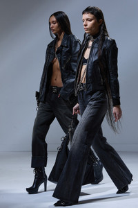 Flared leg jean with seam detail twisting around front towards back of pant built with mid-weight Japanese black stretch denim and treated with a vintage dark black wash and subtle grinding throughout. DETAILS Color: Kennet Black Stretch 98% Cotton, 2% Polyurethane R13WD202-D248A Imported