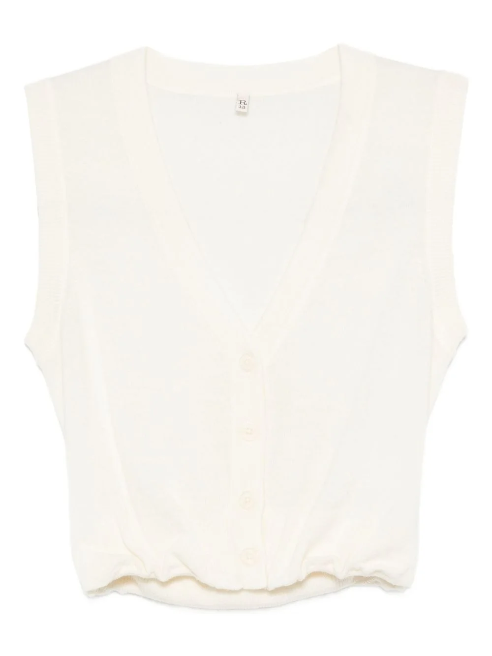 V-neck cropped vest Highlights - Beige - Front button fastening - Sleeveless - Gathered detailing - Straight hem Imported Composition Merino 100% SIZE & FIT Model measurements Height 5 ft 10 in(1.79 m) Bust/Chest 31.88 in(81 cm) Hips 35.43 in(90 cm) Waist 23.62 in(60 cm)