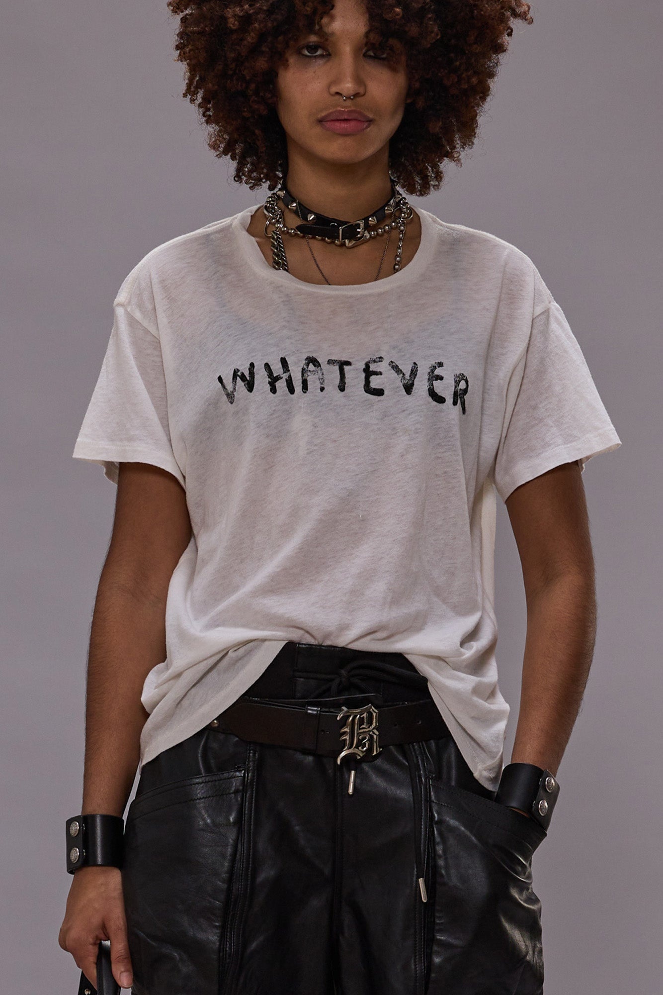 Classic cotton cashmere boy T with a printed "Whatever" graphic. - Color: Ecru - 95% Cotton, 5% Cashmere - R13WK001-K116B - Imported