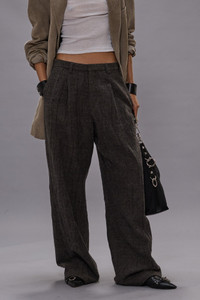 Wide leg trouser built from Italian crinkle wool. DETAILS Made in Italy Color: Dark Grey Plaid 100% Virgin Wool R13WR462-R581A