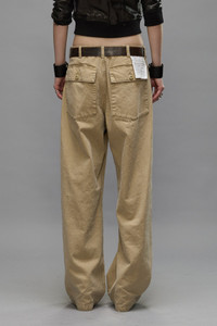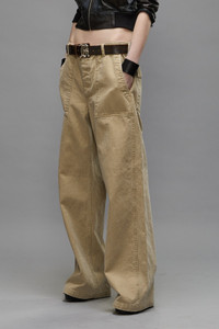Relaxed fit wide leg utility pant built from Japanese herringbone cotton twill and treated to a long stone wash for a worn look and soft feel.This style runs slightly large. If in between sizes, we recommend sizing down. - Color: Beige - 100% Cotton - R13WR077-R381B - Imported