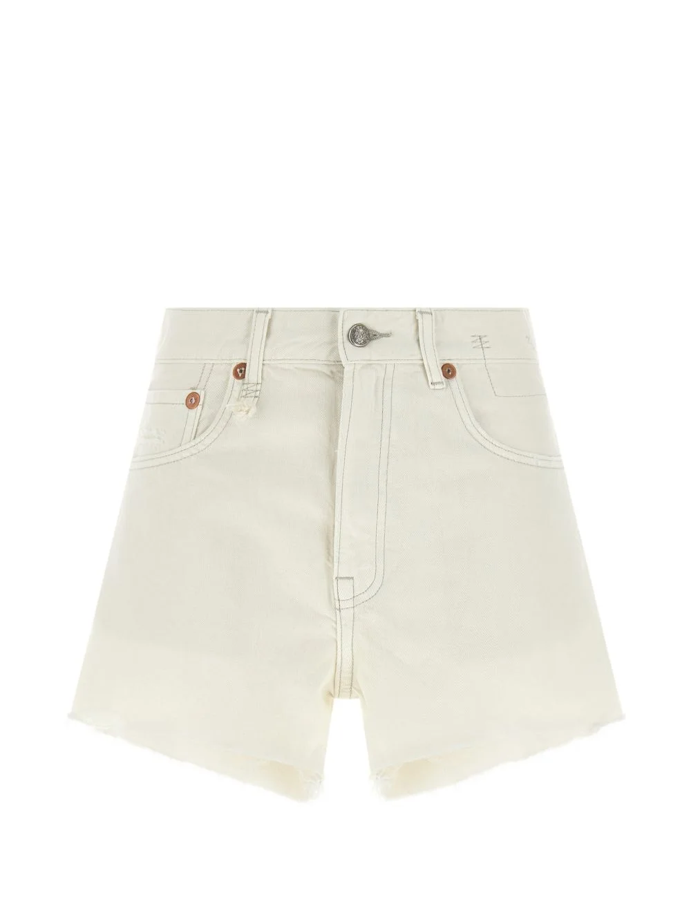 X-BF destroyed frayed shorts Highlights - Off-white - Cotton - Classic five pockets - Concealed front zip - Button closure - Back logo tag Imported Composition Cotton 100% Washing instructions Read Manufacturer Guidelines