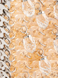 This bag is made by hand-assembling resin discs, embellished with crystal rhinestones. - Color: Transparent Pink / Silver - Dimension: 19x11x3cm - Composition: 70% Acetate, 30% Glass - Made in Madagascar