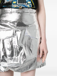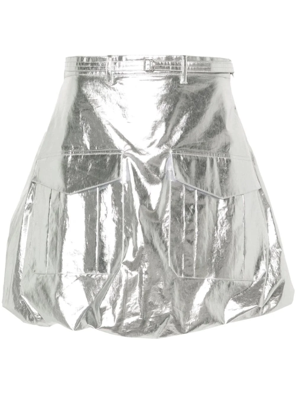 A-line metallic mini skirt Known for creating eye-catching styles with a striking twist, Paco Rabanne presents this skirt. Rendered in silver tone, the foiled construction is made to an A-line bubbly silhouette finished with a matching belt. Highlights - Silver-tone - Cotton blend - Metallic effect - A-line - Belted waist - Belt loops - Two front flap pockets - Puffball hem - Cotton lining - Concealed side zip fastening Imported Composition Cotton 76%, Polyurethane 24% SIZE & FIT Model measurements Height 5 ft 9 in(1.75 m) Bust/Chest 34.64 in(88 cm) Hips 36.61 in(93 cm) Waist 26.37 in(67 cm) Measurement HIPS 39.76 in(101 cm) LENGTH 18.11 in(46 cm) WAIST 29.13 in(74 cm) FittingInformation This mini-length skirt is intended to be worn high on the waist The belt offers adjustability for fitted preferences Made from a lightweight non-stretch fabric This piece fits true to size – take your usual size