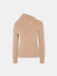 Details of 8 embellished silver buttons at the collar and left shoulder. - Color : Beige - Oversized turtleneck - Long sleeves - Details of 8 embellished silver buttons at the collar and left shoulder. DETAILS - Composition : 100% Wool - Made in Romania - Model's height: 180 cm / 5ft 11in - Model wears a size FR 36 / UK 8 / US 4 - This style is true-to-size - We recommend your usual size.