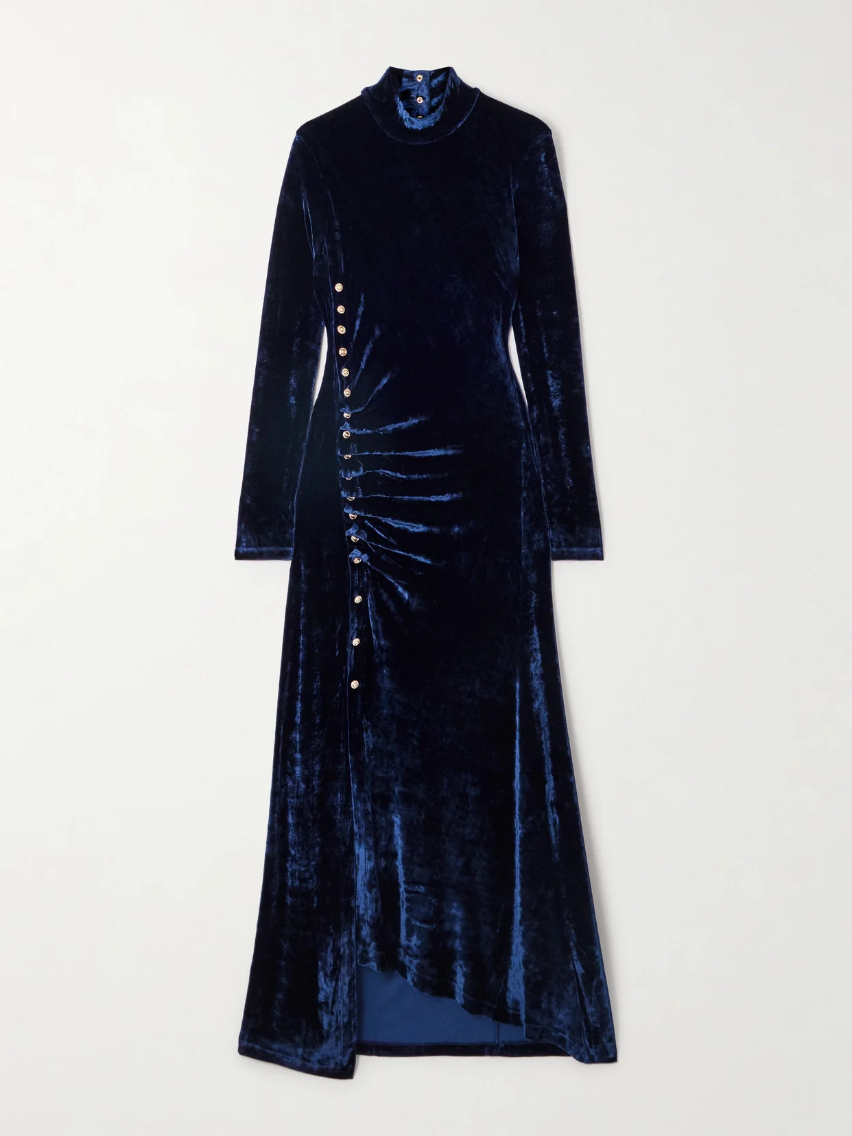 You'll be so excited to debut Rabanne's dress at an important event. It's made from plush velvet that's ruched on one side and falls to an asymmetric hem. Experiment with the shape by undoing some of the snaps.