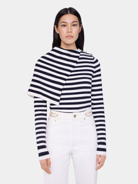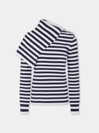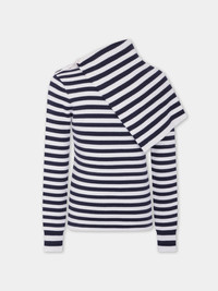 Details of silver buttons on the left shoulder. - Color : White / Navy - Oversized turtleneck - Long sleeves - Details of silver buttons on the left shoulder. DETAILS - Composition : 100% Wool - Made in Romania - Model's height: 180 cm / 5ft 11in - Model wears a size FR 36 / UK 8 / US 4 - This style is true-to-size - We recommend your usual size.