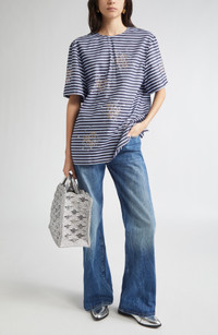 Rabanne-signature hole-punched discs detail the grommet-pierced waistband on these baggy-fit wide-leg jeans cut from nonstretch denim in a sanded stone wash. Zip fly with button closure Five-pocket style 100% cotton Hand wash, line dry Made in Italy Designer Clothing