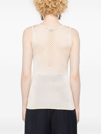 bead-embellished knitted top Highlights - Cream white - Knitted construction - Open knit panelling - Bead embellishment - Round neck - Sleeveless - Ribbed hem Imported Composition Viscose 100% SIZE & FIT Model measurements Height 5 ft 10 in(1.77 m) Bust/Chest 34.25 in(87 cm) Hips 37.4 in(95 cm) Waist 29.13 in(74 cm) Measurement CHEST 31.49 in(80 cm) LENGTH 23.62 in(60 cm) WAIST 28.34 in(72 cm) FittingInformation Designed for a slim fit that sits just away from the body offering a close yet comfortable fit Made with a midweight knit, this piece offers some stretch This piece fits true to size – take your usual size