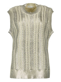 textured-knit sleeveless top Highlights - Light green - Ribbed texture - Mock neck - Open-back design - Cable knit pattern Imported Composition Polyamide 100%, Cotton 100%