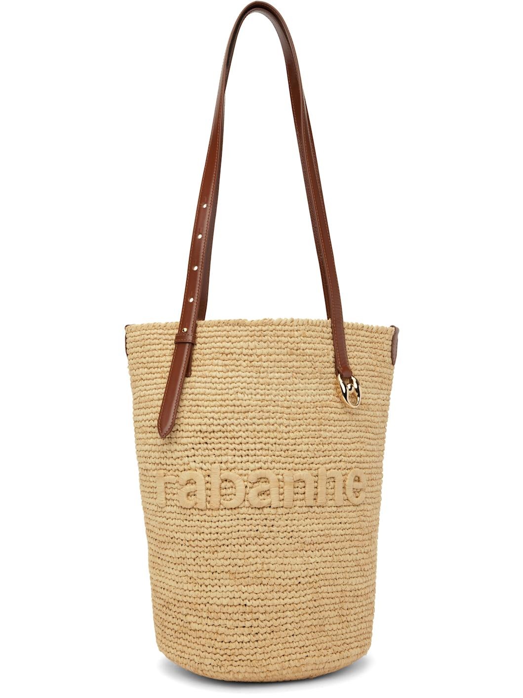Beige Raffia Logo Tote