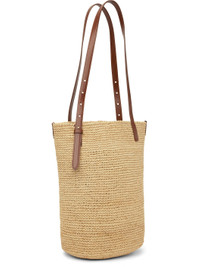 Woven raffia tote in beige. · Buffed leather trim throughout · Adjustable shoulder straps · Logo hardware at strap · Woven logo appliques at face · Patch pocket at interior · Unlined · H14.5" x W14" x D8.5" Supplier color: Shiny beige Textile, leather. Made in Madagascar 251605F049000