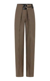 Belted Wool Straight-Leg Pants multi