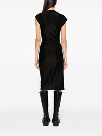 asymmetric draped midi dress Rabanne channels a sleekly eccentric aesthetic with this midi dress. Defined by its striking asymmetric silhouette, it arrives in a jet-black colourway and is enhanced with silver-tone stud fastening at the hip that creates graceful draped detailing to the front. Highlights - Black - Stretch-design - Asymmetric design - Draped design - Single short sleeve - Side press-stud fastening - Asymmetric hem Imported Composition Viscose 90%, Spandex/Elastane 10% SIZE & FIT Model measurements Height 5 ft 11 in(1.8 m) Bust/Chest 31.49 in(80 cm) Hips 36.22 in(92 cm) Waist 25.59 in(65 cm) Measurement HIPS 29.92 in(76 cm) LENGTH 45.27 in(115 cm) WAIST 23.62 in(60 cm) FittingInformation Designed for a close fit throughout Made from a midweight stretch fabric, this piece offers elasticity and flexibility when worn This piece fits true to size – take your usual size