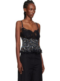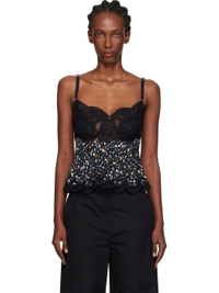 Stretch viscose jersey and stretch nylon lace camisole. · Semi-sheer · Paneled construction · Floral pattern printed throughout · Scalloped edges at sweetheart neck and hem · Pleats at bodice · Adjustable shoulder straps Supplier color: Black Body: 90% viscose, 10% elastane. Trim: 90% polyamide, 10% elastane. Made in Tunisia 252605F111001