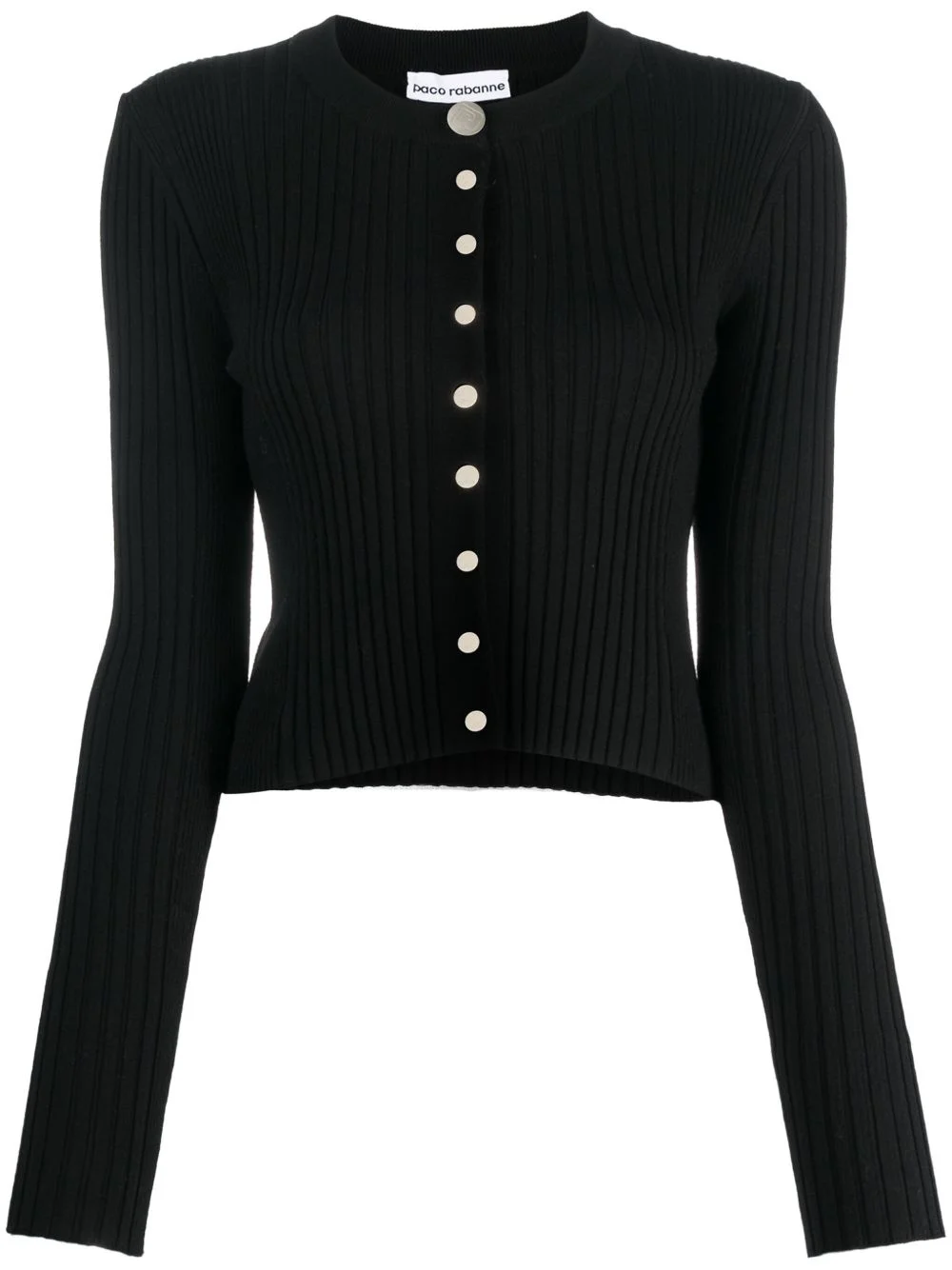 ribbed wool-blend cardigan Highlights - Black - Wool blend - Ribbed knit - Round neck - Front button fastening - Long sleeves - Cropped - Straight hem Imported Composition Wool 83%, Polyimide 15%, Elastane 2% SIZE & FIT Model measurements Height 5 ft 10 in(1.78 m) Bust/Chest 30.7 in(78 cm) Hips 36.22 in(92 cm) Waist 25.59 in(65 cm) FittingInformation Designed for a close fit throughout Made with a midweight knit, this piece offers some stretch This piece fits true to size – take your usual size