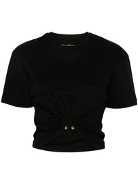 ring-embellished T-shirt Highlights - Black - Cotton - Jersey texture - Crew neck - Short sleeves - Ruched detailing - Ring hardware detailing - Gold-tone logo plaque to the rear - Internal logo stamp - Curved hem Imported Composition Cotton 100% SIZE & FIT Model measurements Height 5 ft 10 in(1.77 m) Bust/Chest 31.88 in(81 cm) Hips 36.22 in(92 cm) Waist 24.01 in(61 cm) Measurement BUST 29.92 in(76 cm) LENGTH 19.68 in(50 cm) SLEEVE LENGTH 7.08 in(18 cm) Shoulder Width 17.71 in(45 cm) FittingInformation Designed for a slim fit that sits just away from the body offering a close yet comfortable fit Made from a midweight non-stretch fabric, this piece offers minimal elasticity when worn This piece fits true to size – take your usual size