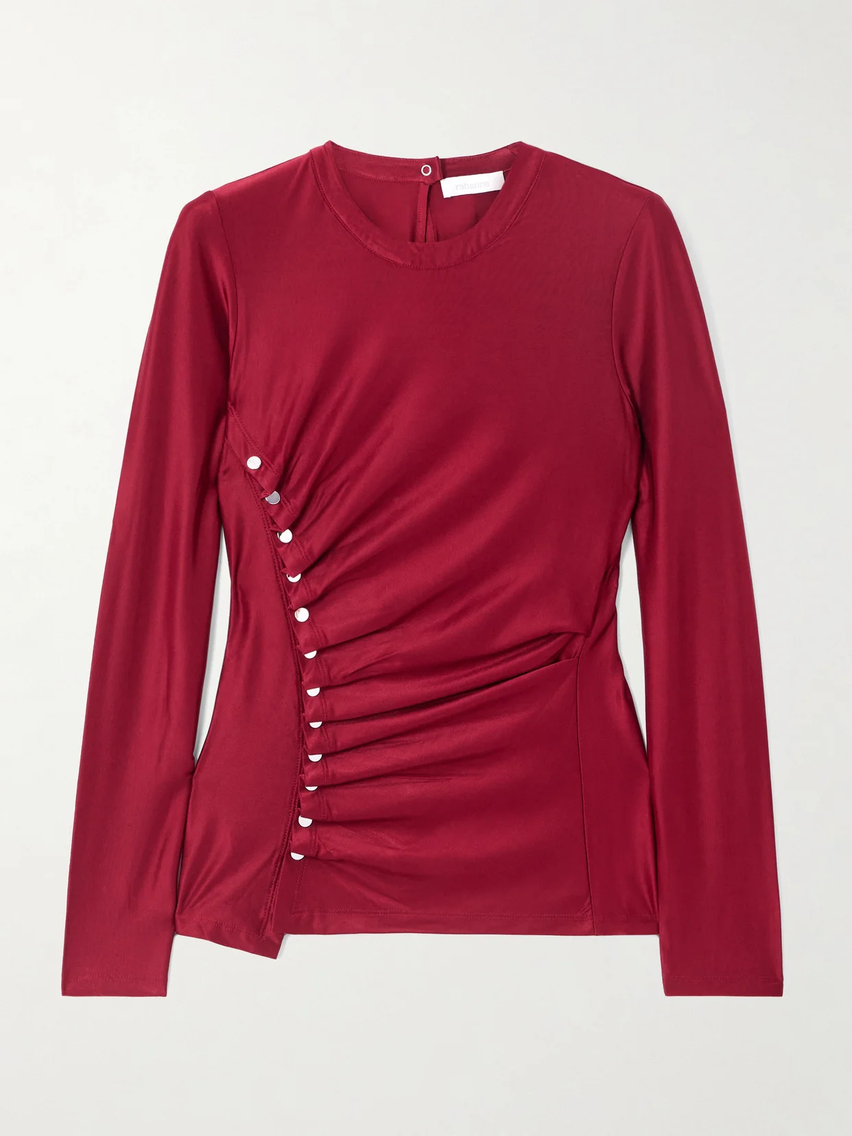 EXCLUSIVE AT NET-A-PORTER. Rabanne's top is adorned with silver-tone snap fastenings through the front - the signature detail can be adjusted, allowing you to reveal more or less skin. It's made from jersey that's gathered for subtle texture.