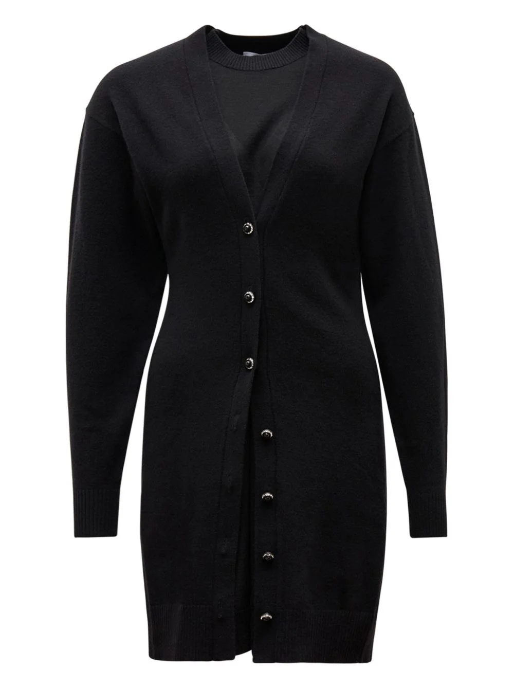 button-embellished chain-detail mini dress Highlights - Black - Long sleeves - Button front fastening - Embellished buttons - Chain detail at the neckline - Ribbed hem Imported Composition Wool 88%, Cashmere 10%, Polyamide 2% Washing instructions Read Manufacturer Guidelines
