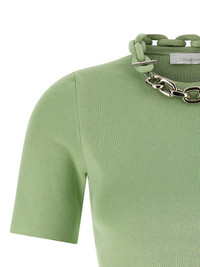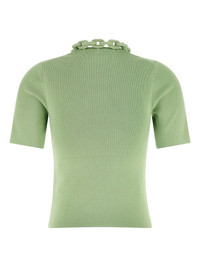 embellished-collar ribbed T-shirt Highlights - Green - Crew neck - Metal detail - Short sleeves Imported Composition Fabric 44%, Cotton 36%, Spandex/Elastane 20% Washing instructions Read Manufacturer Guidelines
