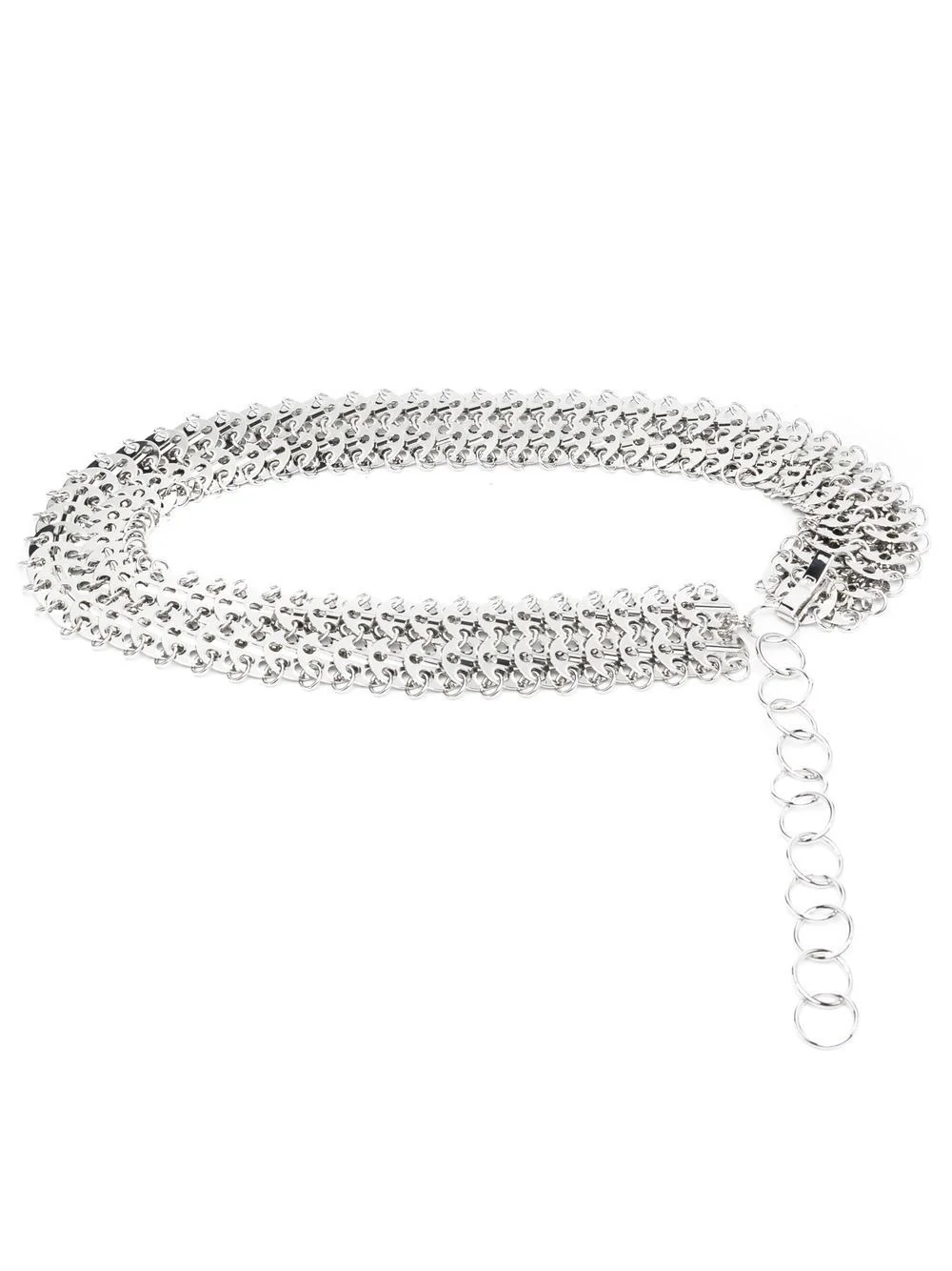 chainmail adjustable belt silver-tone brass chainmail detailing clasp fastening adjustable fit Imported Composition Brass 100% SIZE & FIT Measurement TOTAL LENGTH 37 in(94 cm) WIDTH 1.77 in(4.5 cm)