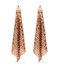 chainmail drop earrings Highlights - Bronze-tone - Drop design - Triangle motif - Chainmail detailing - Butterfly fastening - For pierced ears - These earrings come as a pair. Imported SIZE & FIT Measurement HEIGHT 4.21 in(10.7 cm) Weight (single earring) 5 g(5 g) WIDTH 3.74 in(9.5 cm)