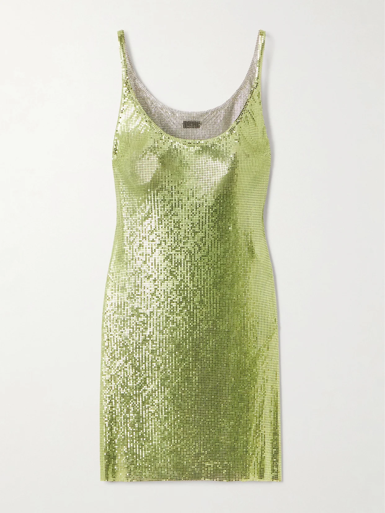 Rabanne's chanmail dresses were the talk of Paris when they debuted at the Hotel George V in '66, and they maintain their iconic status today. This mini style has a simple, figure-skimming design with a scooped neckline and split hem.