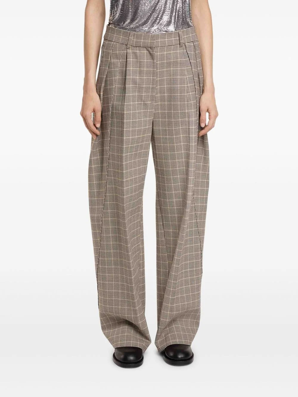 checked pleated wide-leg trousers Highlights - Taupe beige - Concealed front fastening - Check pattern - Pleated front - High-waisted - Dual side pockets - Relaxed fit Imported Composition Wool 93%, Elastane 4%, Polyamide 3%