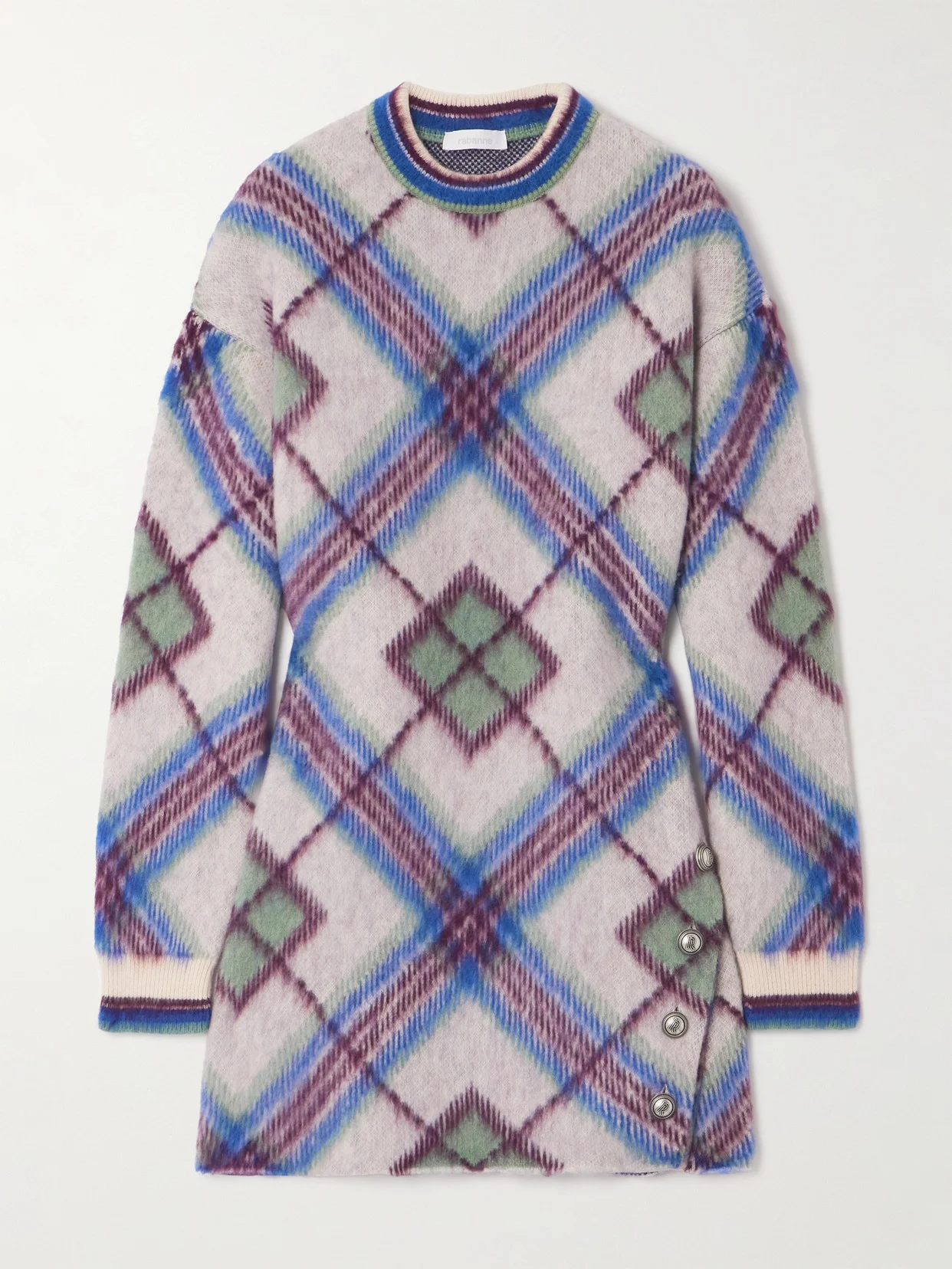 As seen on Rabanne's Fall '24 runway, this dress is made with wool and alpaca and brushed to give it a fuzzy handle. It has an eye-catching checked pattern, a crew neckline and cuffs and engraved buttons along the side.