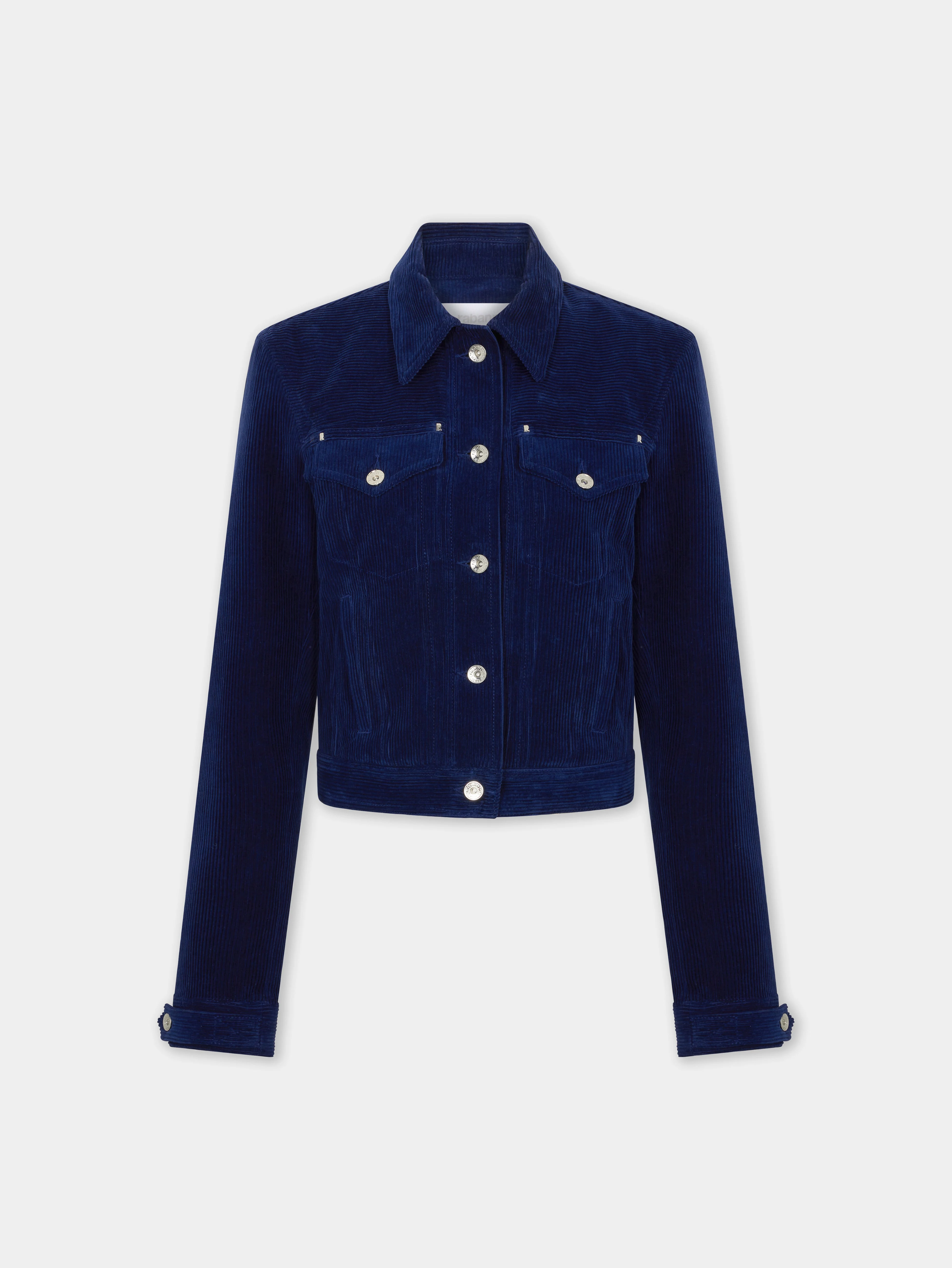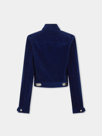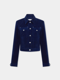 Long-sleeve trucker jacket in velvet. - Color: Blue - Long sleeves - Closure with 5 silver snap buttons. - Composition: 100% Cotton - Made in Italy Size & Fit - Model's height: 180 cm / 5ft 11in - Model wears a size FR 36 / UK 8 / US 4 - This style is true-to-size - We recommend your usual size.