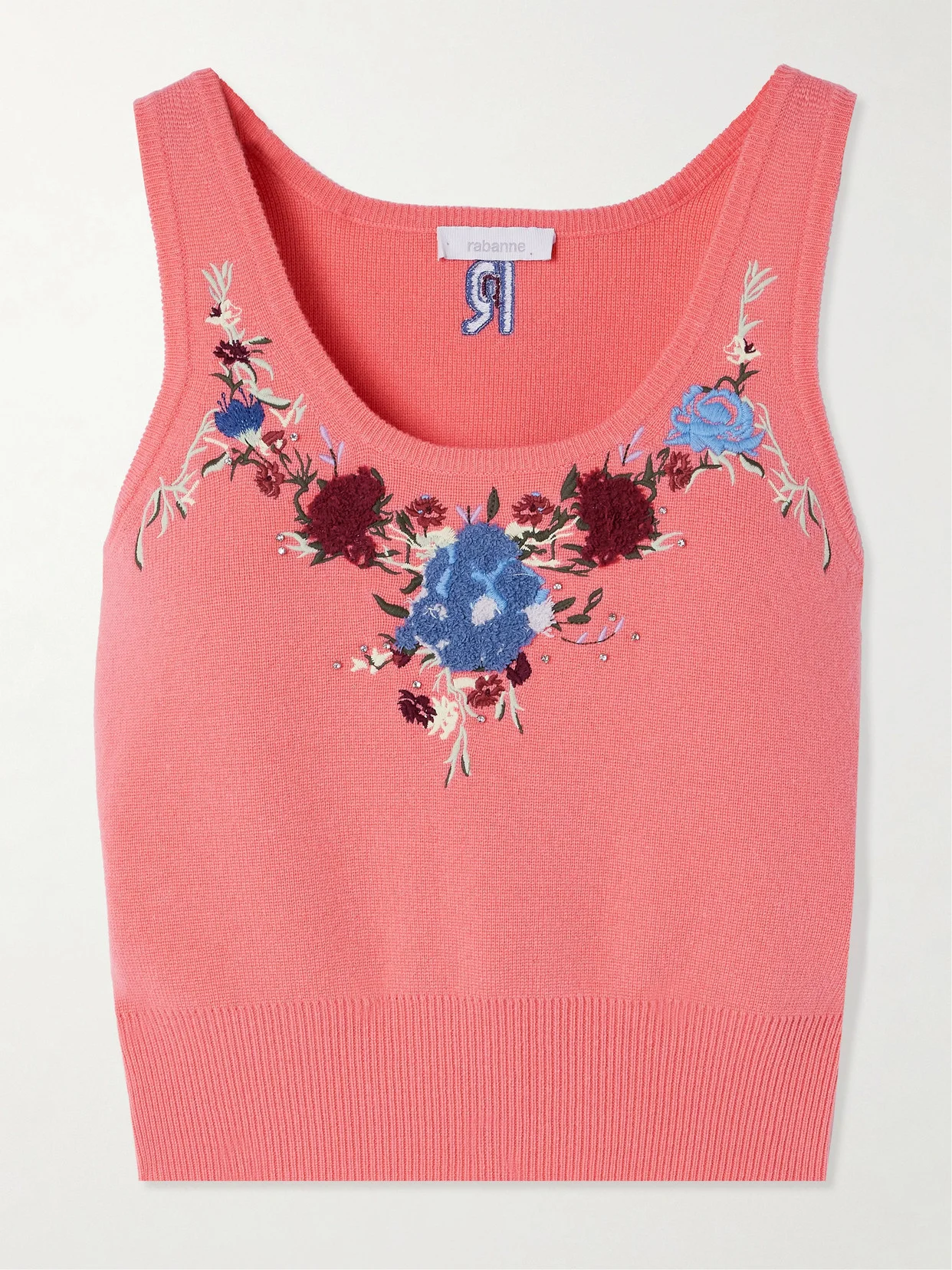 This top showcases Rabanne's appreciation for detail. It's knitted from soft wool and cashmere-blend and embroidered with delicate florals and crystals along the top. The ribbed hem enhances the cropped fit, so it works perfectly with high-rise pants or jeans.