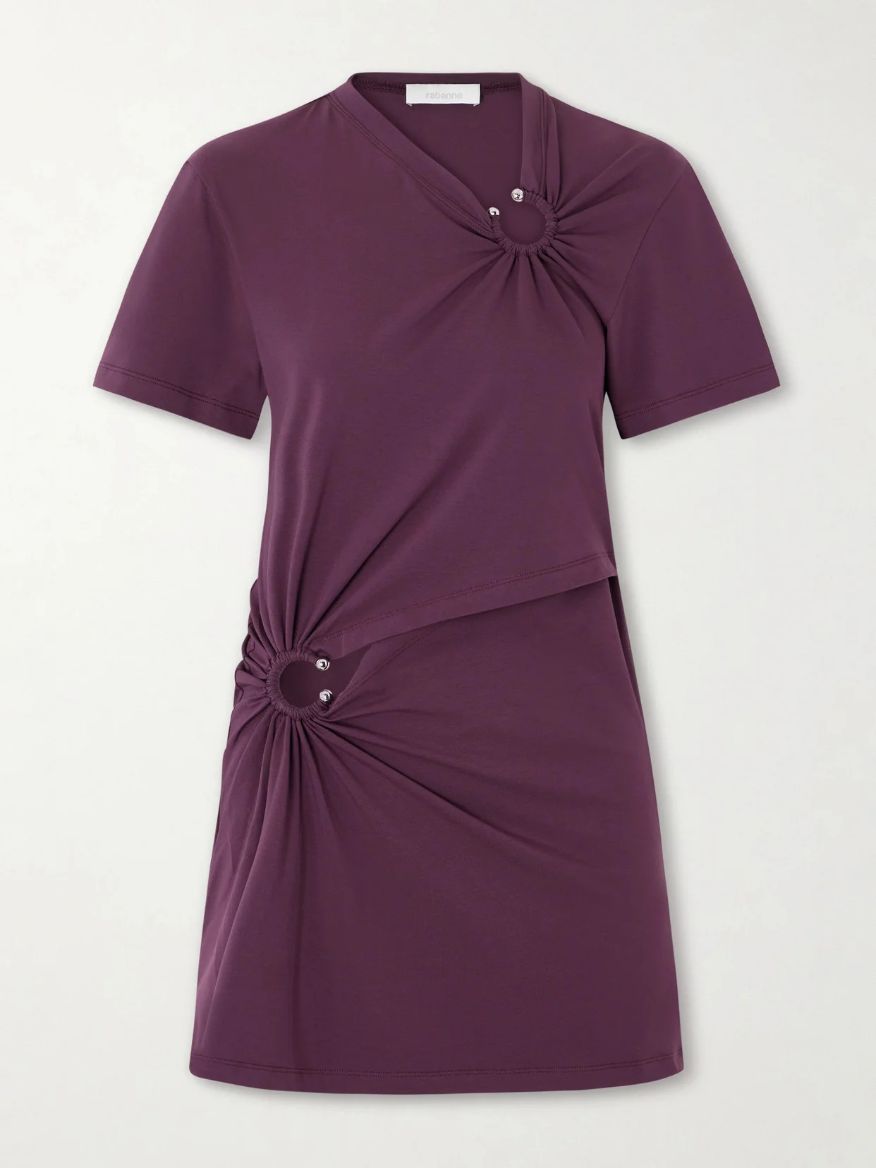 Embellished Gathered Cut-out Cotton-blend Jersey Mini Dress