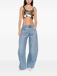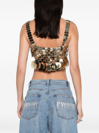 disc-embellished cropped top Highlights - Gold - Disc embellishments - Sleeveless - Scoop neck - Shoulder straps Imported Composition Polyester 80%, Steel 20% SIZE & FIT Model measurements Height 5 ft 10 in(1.78 m) Bust/Chest 33.46 in(85 cm) Hips 36.22 in(92 cm) Waist 23.22 in(59 cm) Washing instructions Specialist Cleaning