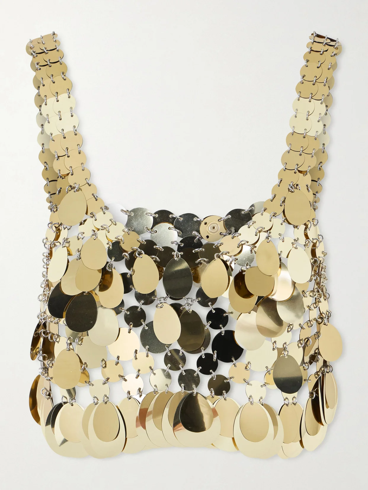 Rabanne's cropped top is reminiscent of the Studio 54 era. It's made from pear-cut chainmail discs that catch the light gorgeously, so it's sure to get you noticed. Style yours with one of the brand's '1969' bags.